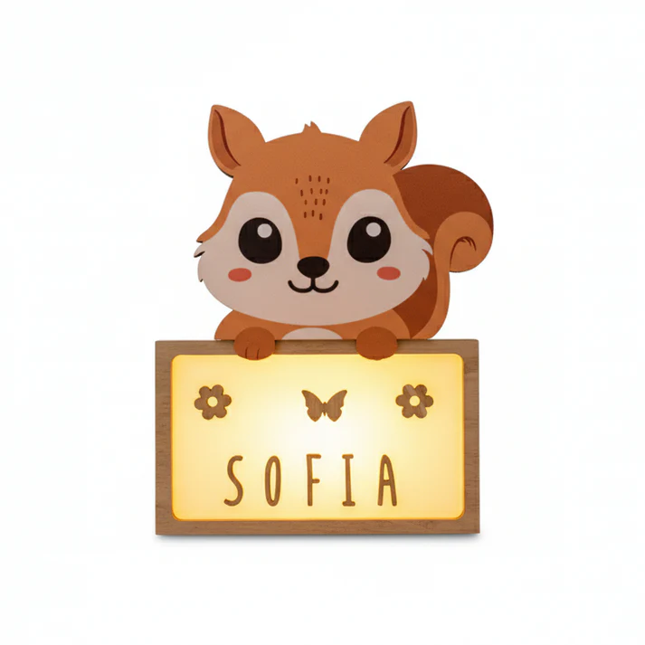 Lámpara Personalizable Ardilla – Marca Vintiun | Luz Quitamiedos Infantil Hecha en España
