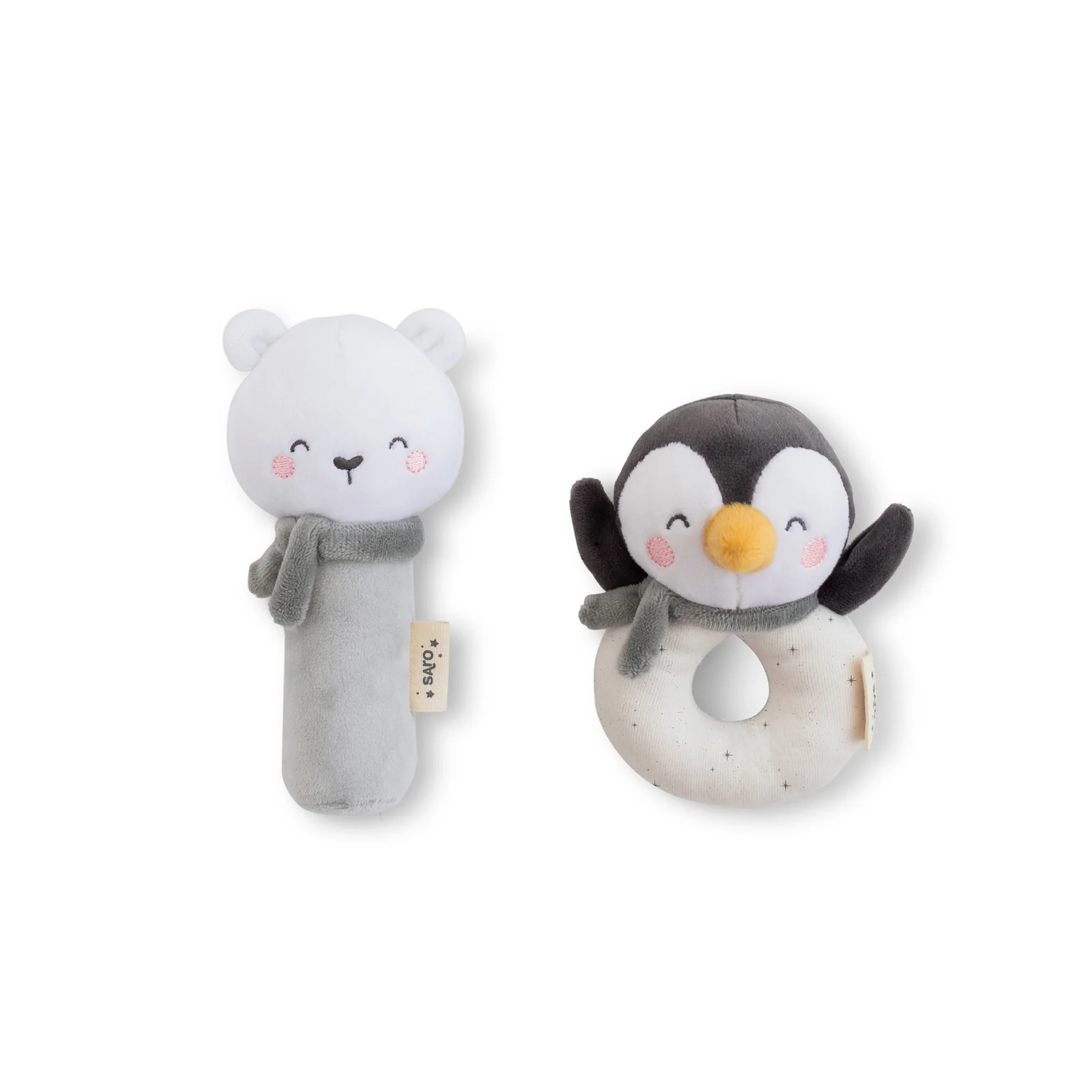 ¡Que no pare la diversión! Con el Set de 2 sonajeros Polaris en color gris de Saro, tu peque descubrirá un mundo de sonidos y texturas diseñado específicamente para sus primeras etapas de desarrollo.