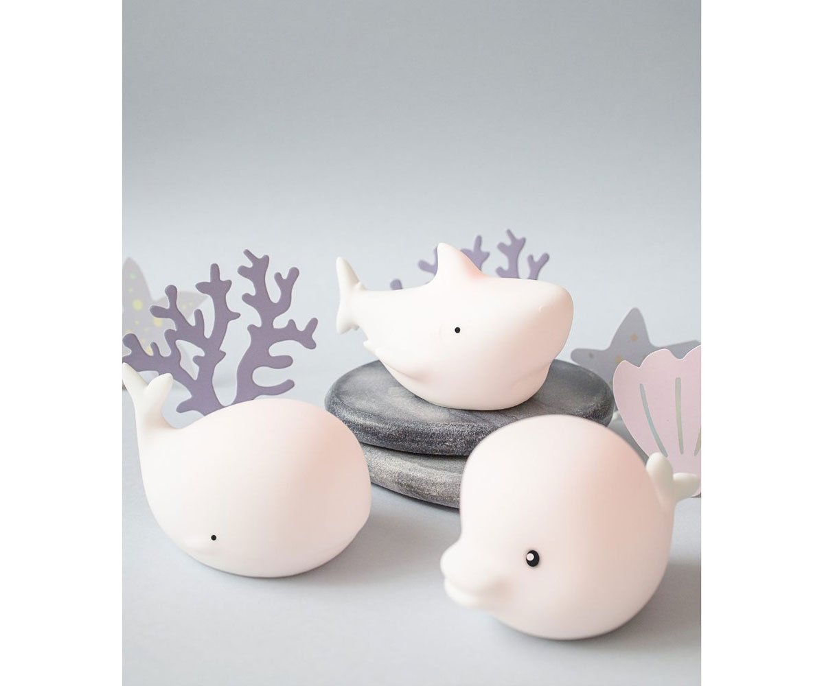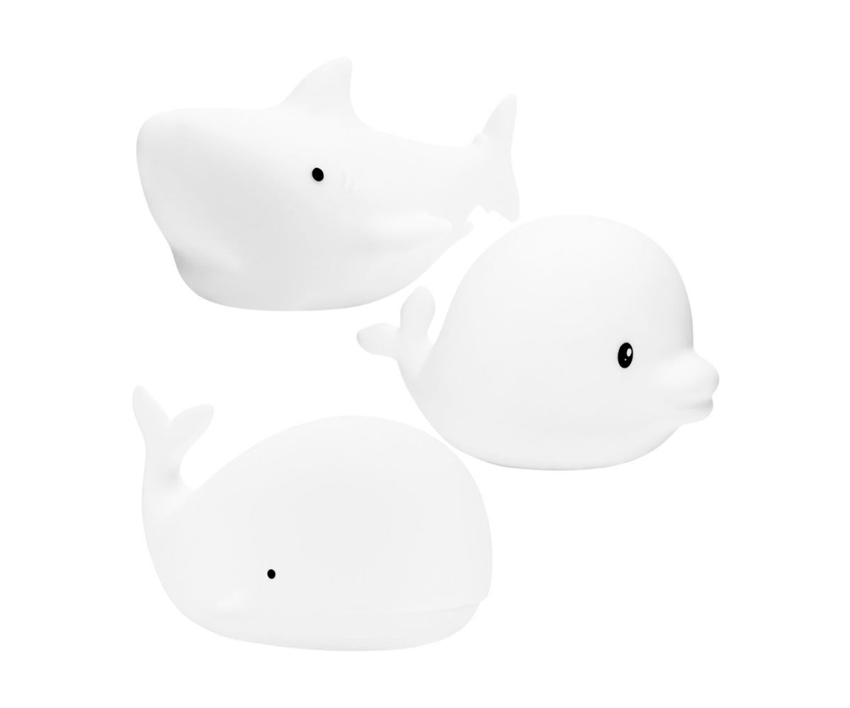 Ilumina la habitación de tu peque con este encantador set de 3 mini lámparas inspiradas en el océano, formado por un delfín, una ballena y un tiburón. Diseñadas para aportar alegría, calma y tranquilidad, estas lámparas infantiles son perfectas como luz nocturna, elemento decorativo o compañeras durante la hora del baño.