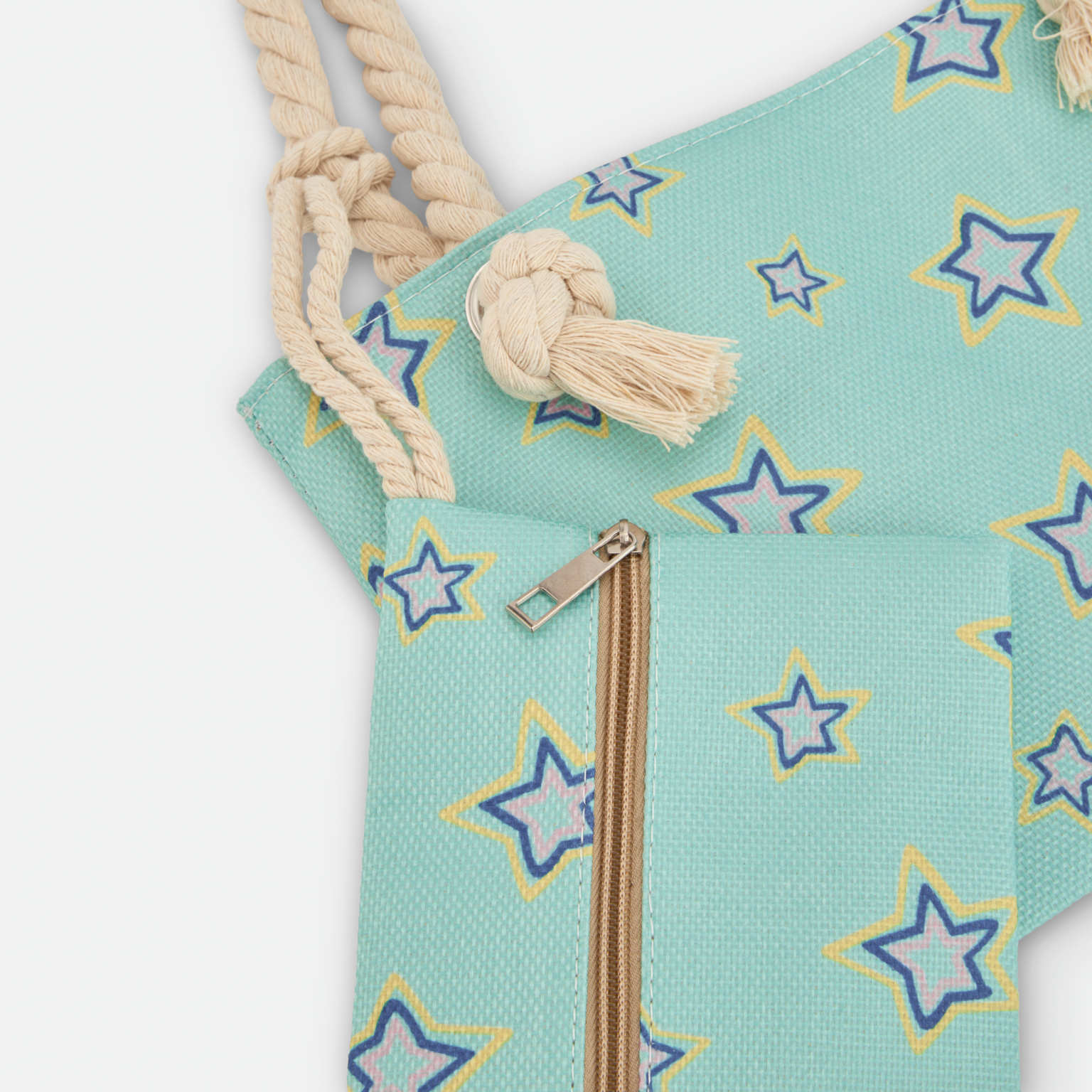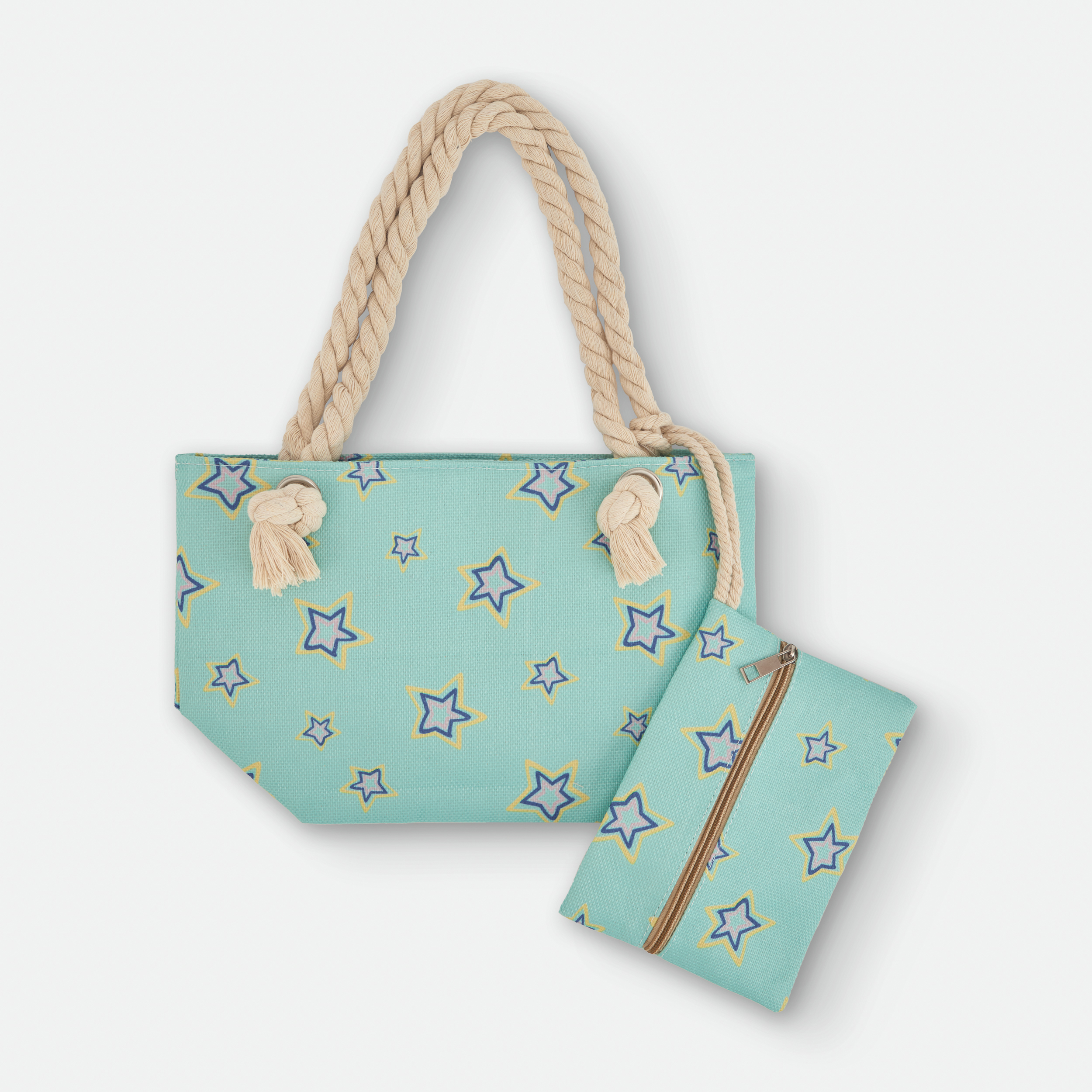 No es solo una bolsa de playa; es una solución práctica y moderna. Su tejido de 100% poliéster asegura un secado rápido y una gran resistencia al desgaste por el sol y la humedad. Ya sea para una escapada de fin de semana o una tarde en la piscina, su estampado de estrellas multicolor aportará un toque de alegría a tu look veraniego.