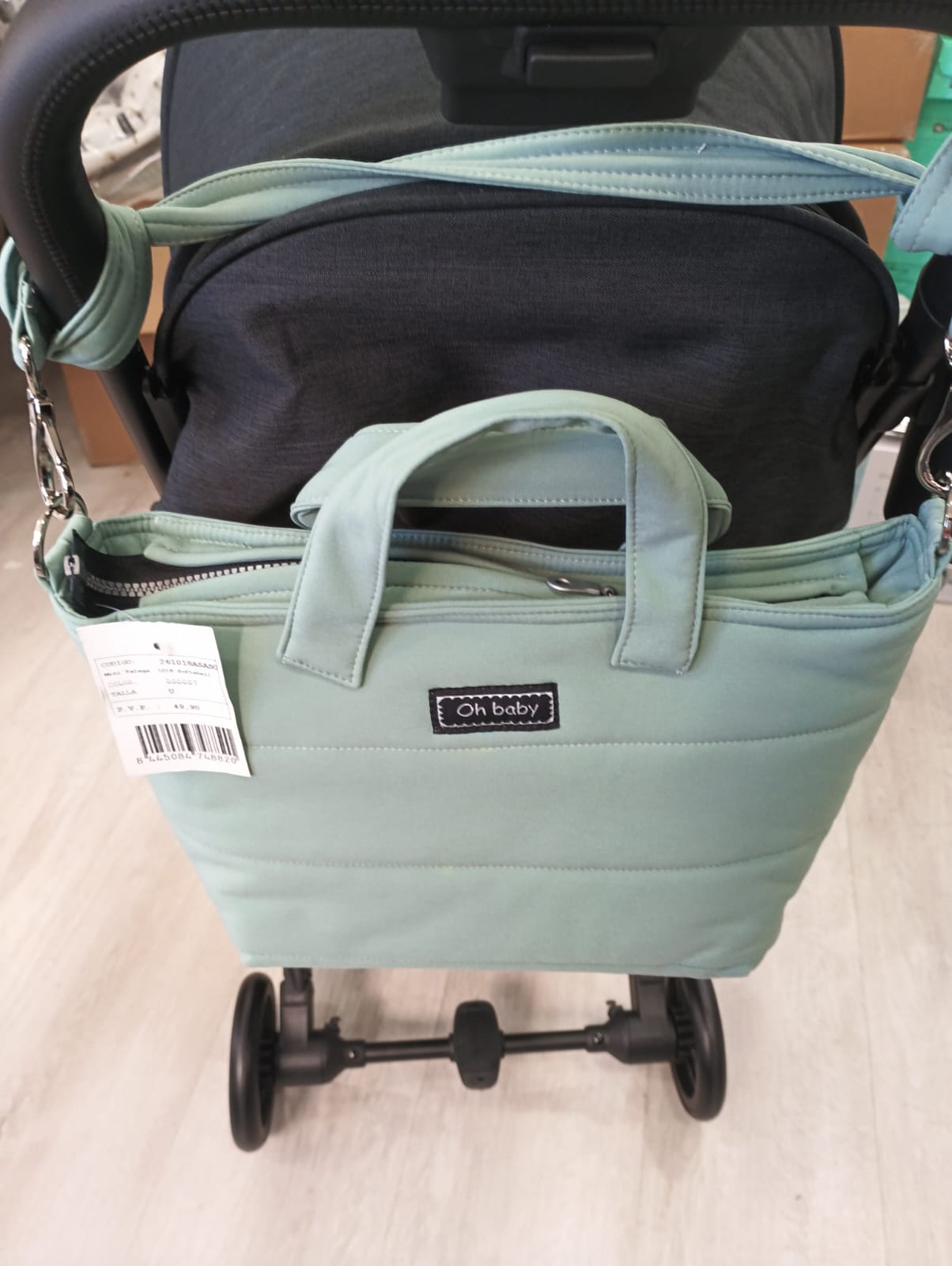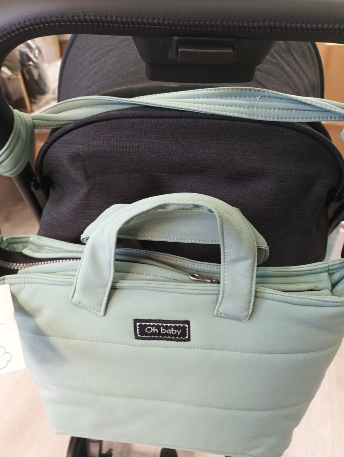 Cuenta con asas cortas para llevarla en la mano y una bandolera extraíble que te permite colgarla cómodamente del hombro o directamente del carrito. El sistema de sujeción con bandolera la hace compatible con la mayoría de carritos y sillas ligeras del mercado.