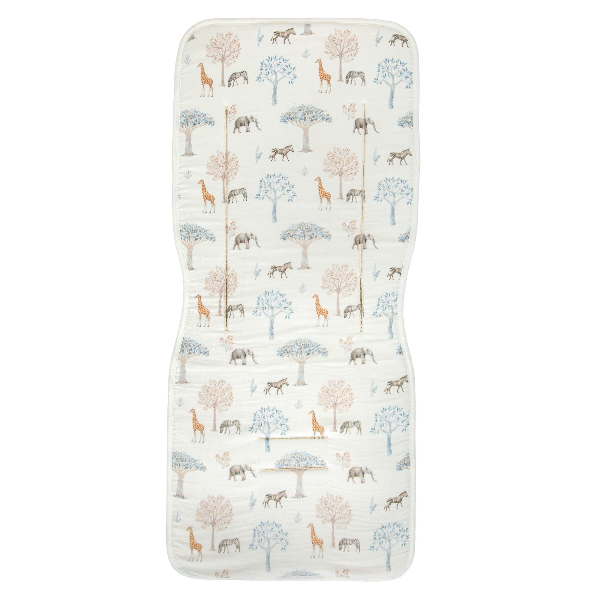 La colchoneta Tanzania destaca por su delicado estampado de animales y árboles, aportando un toque tierno y moderno a cualquier carrito. Pero no es solo estética; está diseñada específicamente para combatir las altas temperaturas: