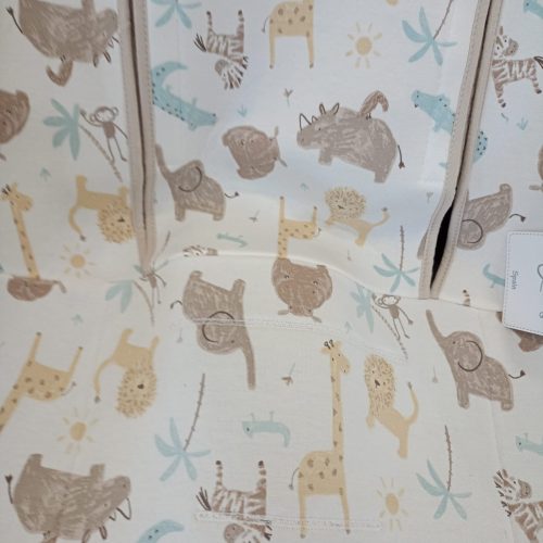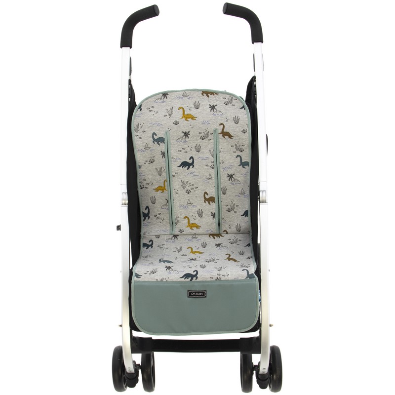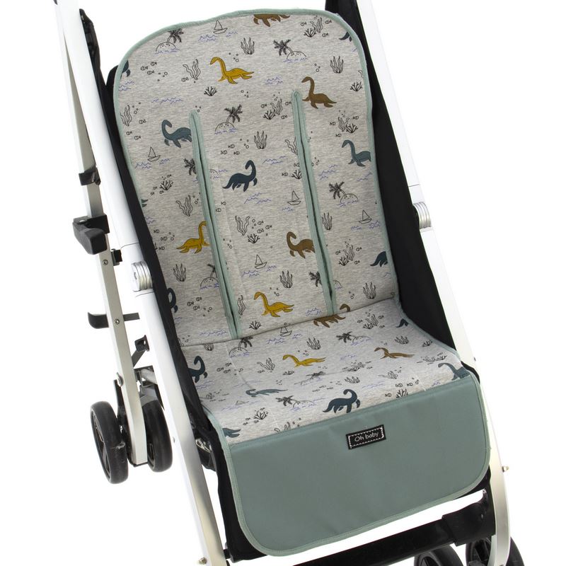 El atractivo estampado de dinosaurios sobre fondo gris aporta un estilo moderno y divertido, ideal para dar un toque único al carrito sin renunciar a la funcionalidad.