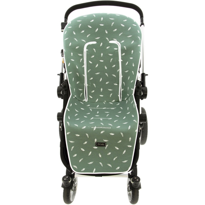 Gracias a su diseño versátil y funcional, esta colchoneta es compatible con la mayoría de carros del mercado, asegurando un ajuste cómodo y seguro en diferentes modelos de sillas de paseo. Su delicado estampado de plumas en tonos verdes aporta un toque elegante y moderno, ideal para personalizar el carrito con estilo propio.