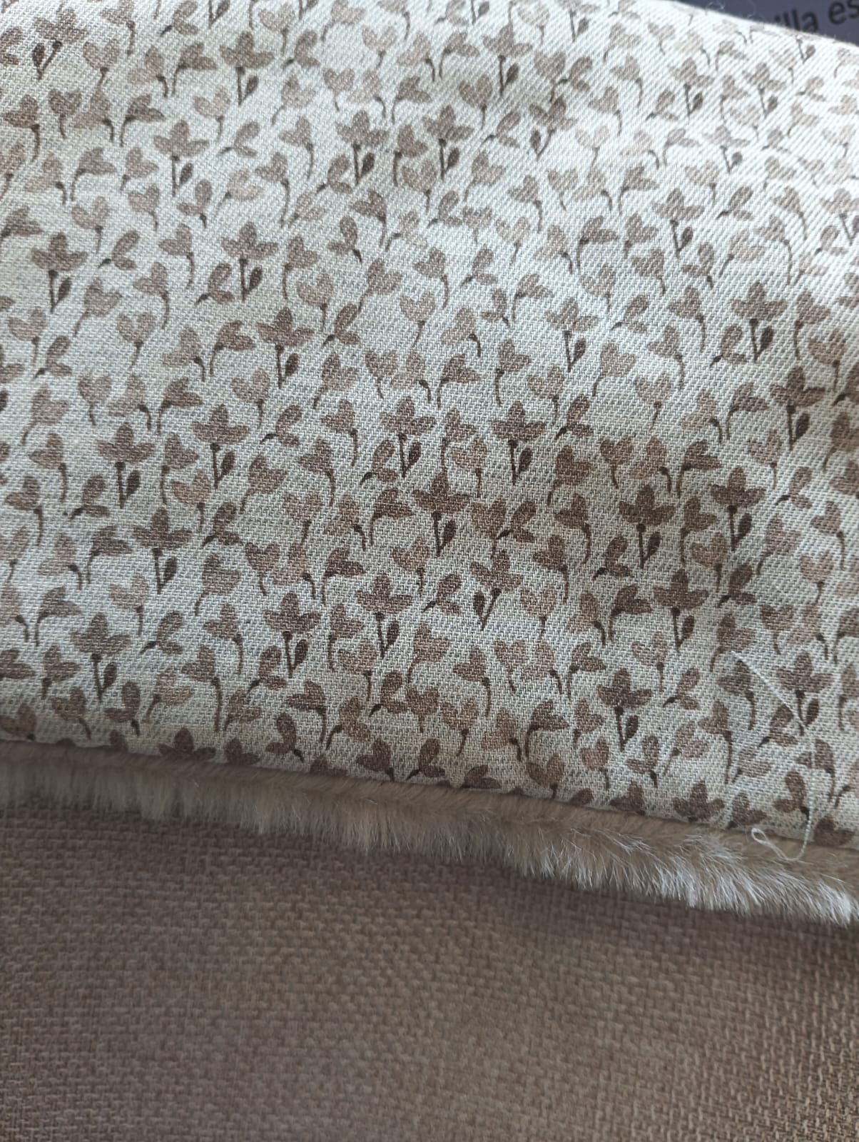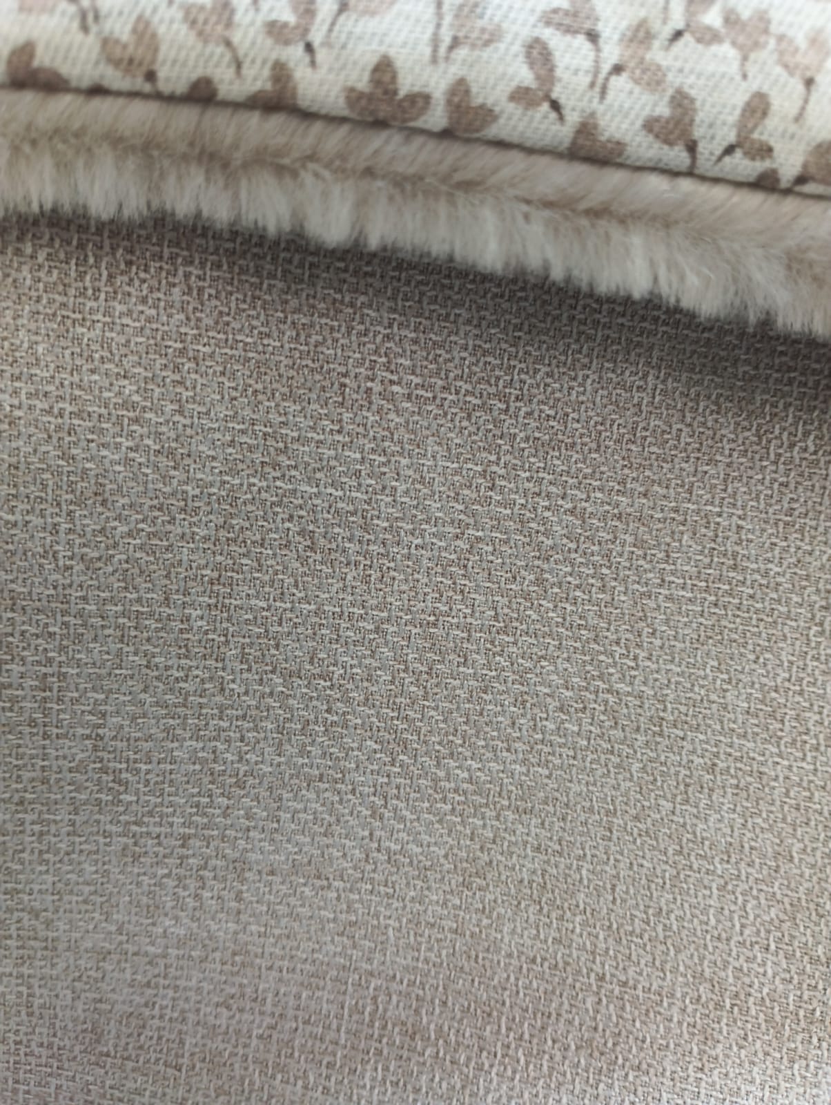 Confeccionado en tejido cheviot antimanchas, el saco Lirio combina un exterior sofisticado con un delicado estampado de hojitas que aporta un toque dulce y natural. Su embozo reversible con pelo proporciona mayor calidez en los días fríos y se puede ajustar según la estación o la preferencia estética.