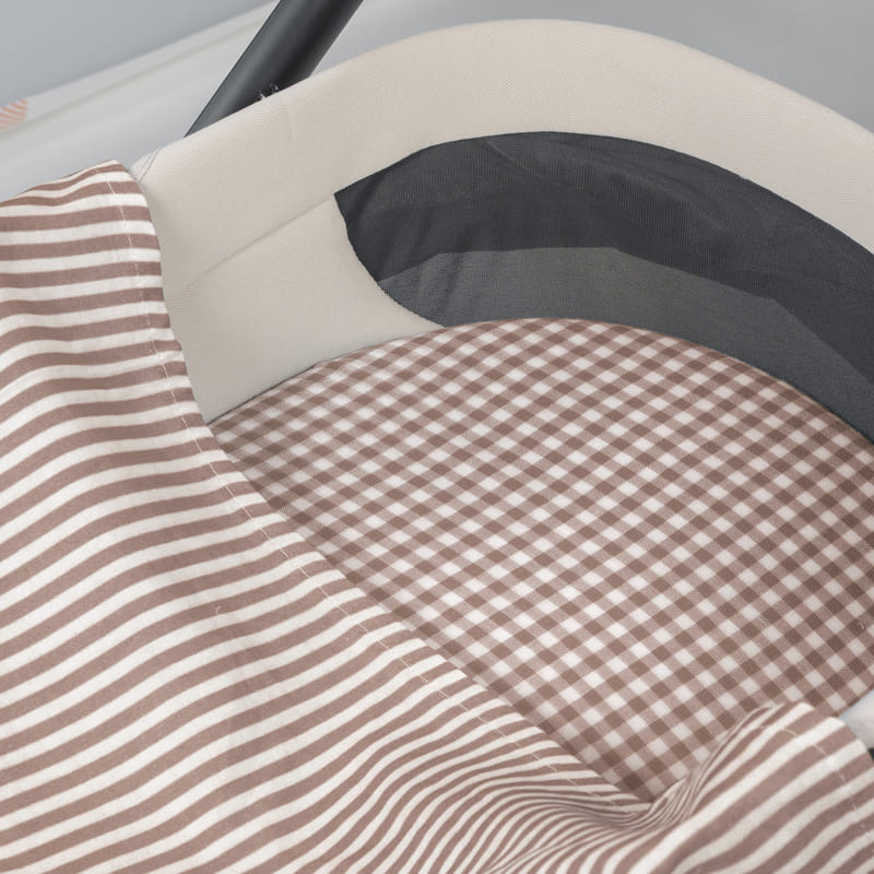 Set Funda Colchón Cuco Vichy + Muselina Rayas Praliné Moka – Walking Mum