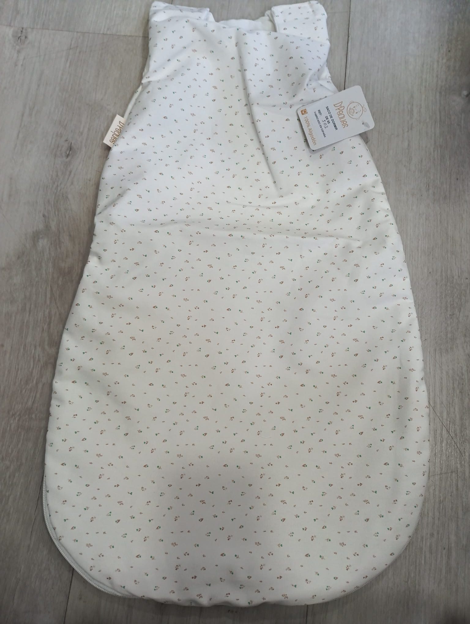 A diferencia de las mantas tradicionales, el saco de dormir evita que el bebé se destape por la noche o que las sábanas puedan cubrir su rostro, ofreciendo un entorno de sueño seguro. Su diseño botánico en tonos tierra y verdes aporta una serenidad visual que ayuda a crear una atmósfera de calma en el dormitorio.