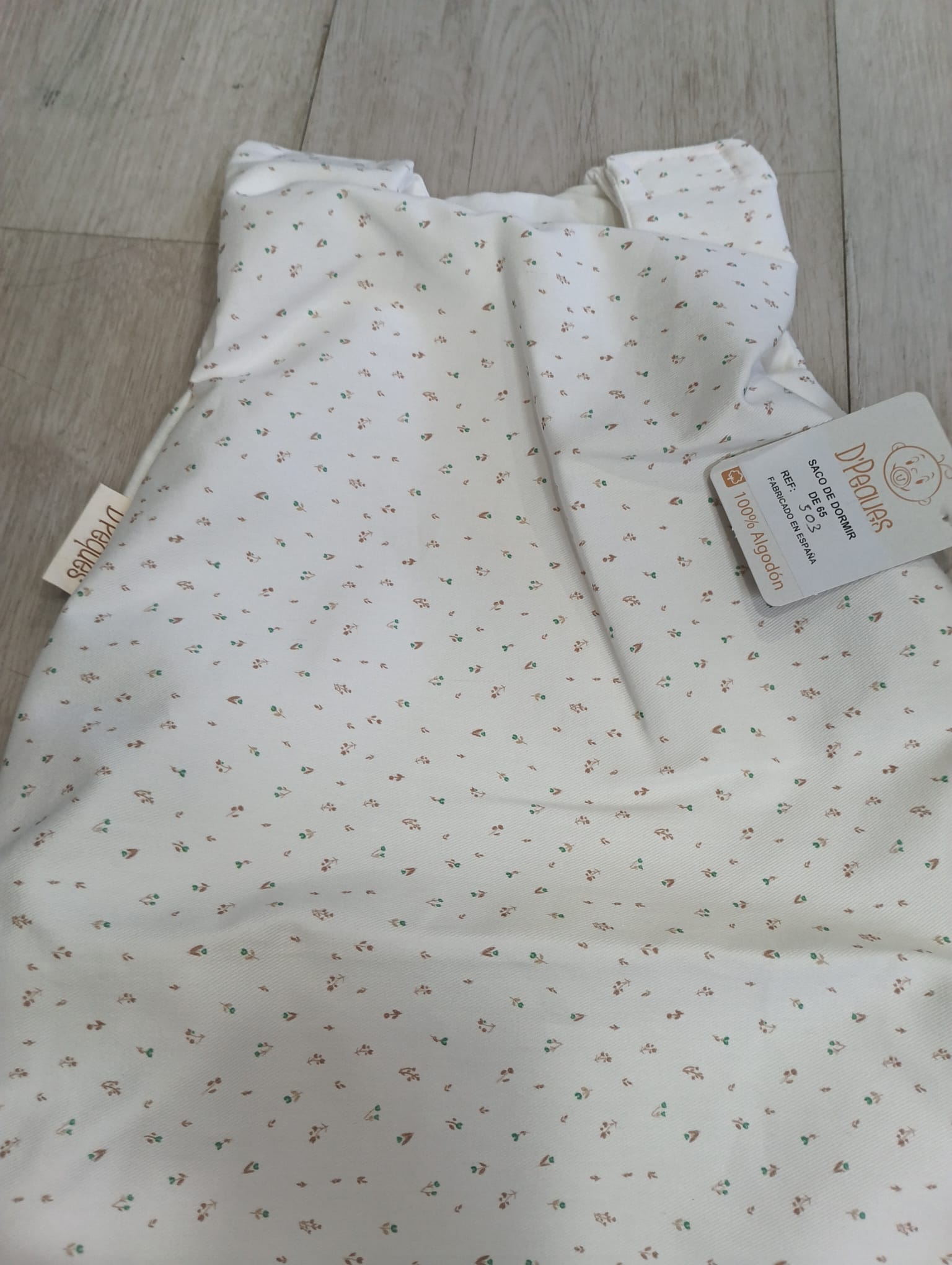 El descanso de tu recién nacido merece la máxima suavidad y seguridad. El saco de dormir Mini Flores de D’Peques es la elección ideal para quienes buscan un producto funcional, transpirable y con un diseño estético que evoca la naturaleza. Con su estampado de hojas y flores en tonos verdes y camel, es el complemento perfecto para una cuna con estilo.
