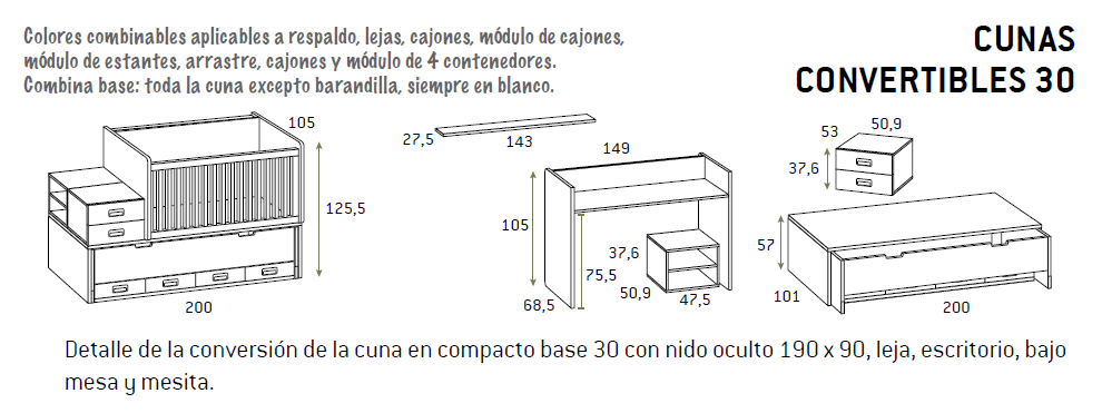 CUNA CONVERTIBLE BICAMA «FORMAS»