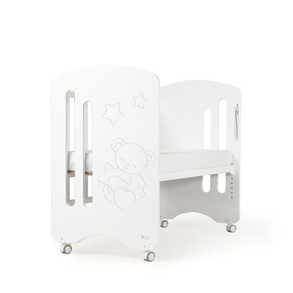La cuna Lovely Premium tiene con opción de transformarse en cuna colecho gracias a su innovador sistema de barandilla totalmente abatible. Aunque para ello vas a necesitar el sistema de colecho universal.