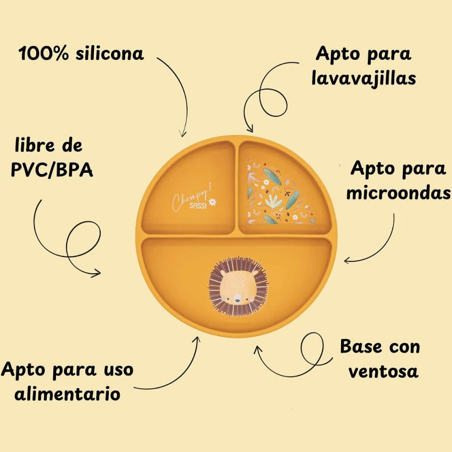 El plato de silicona León Sassi es una opción práctica, segura y divertida para iniciar la alimentación complementaria, combinando funcionalidad, diseño y la calidad que caracteriza a la marca Sassi.