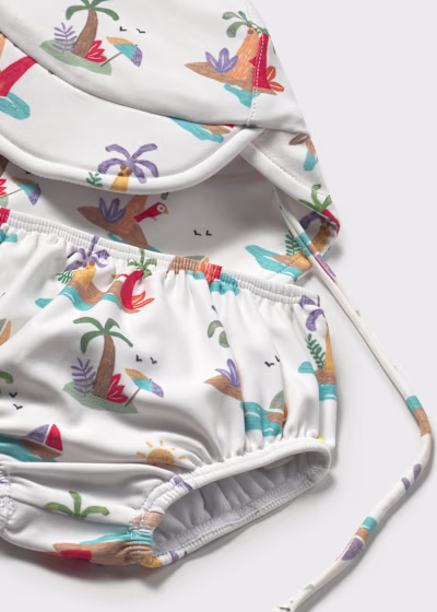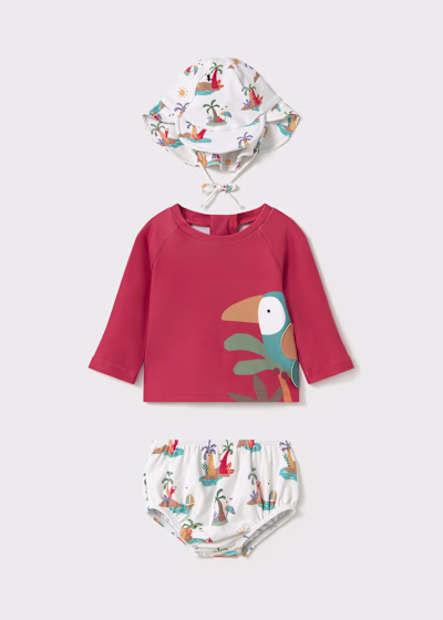 Conjunto de Baño con Camiseta, Gorro y Bañador Anti-Escape con Protección Solar Modelo Loro – Mayoral
