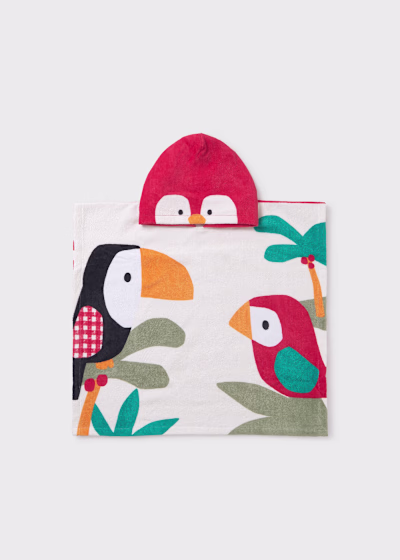Añade un toque tropical y alegre al armario de tu pequeño con este encantador poncho estampado de loros de la marca Mayoral. Hecho con 100% algodón, este poncho es perfecto para mantener a tu hijo cómodo y fresco en los días de calor, gracias a su suavidad y transpirabilidad.