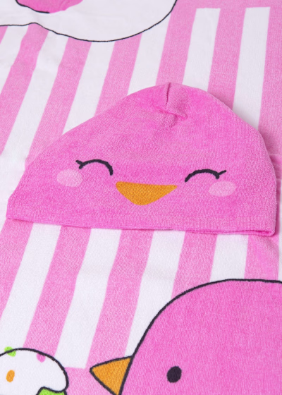 Además, su diseño con capucha proporciona un extra de protección y comodidad, mientras que el corte amplio y ligero permite total libertad de movimiento. ¡Un poncho lleno de estilo y ternura que no puede faltar en el armario de tu pequeño!
