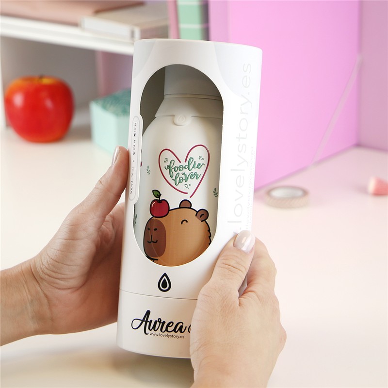 La botella térmica de 500 ml modelo Ice / Green Apple Capibara de la marca Aurea combina funcionalidad, resistencia y un diseño atractivo inspirado en el simpático capibara, perfecta para el uso diario en el trabajo, el colegio, el gimnasio o actividades al aire libre.