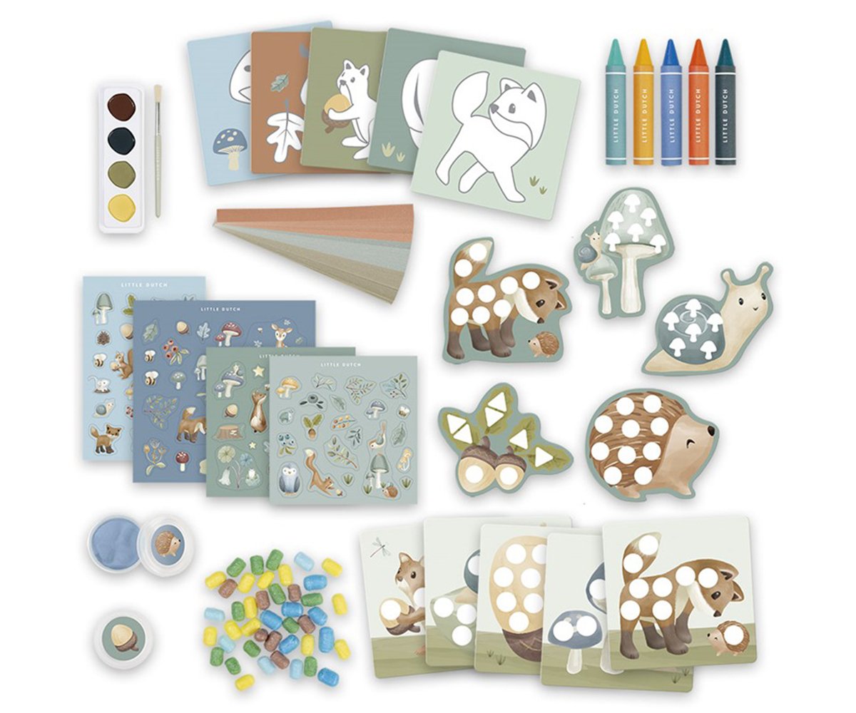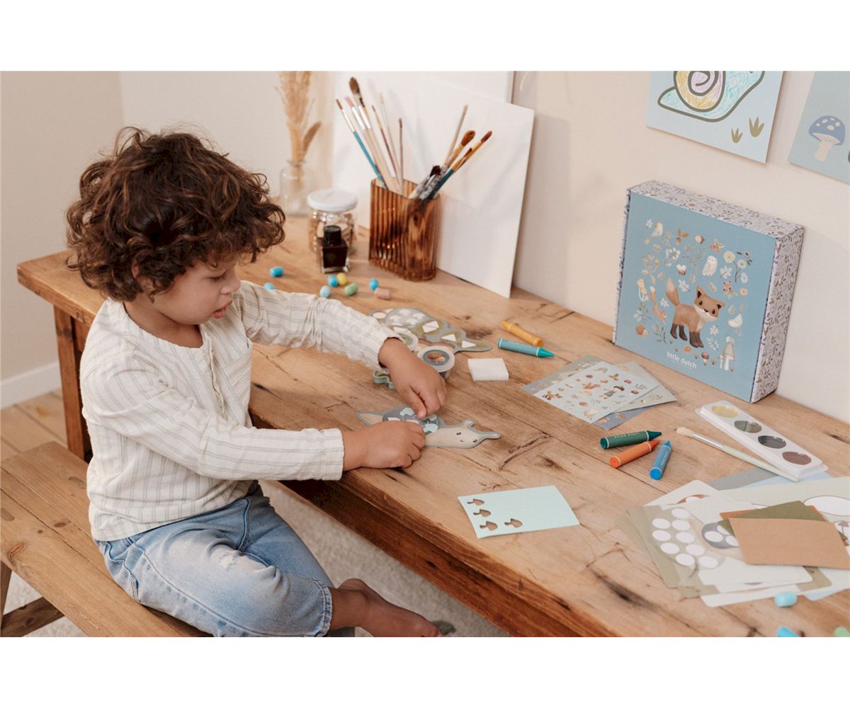 Presentada en una bonita caja resistente y llena de elementos coloridos, esta propuesta de Little Dutch lo tiene todo para que los pequeños artistas den rienda suelta a su imaginación. Incluye una amplia variedad de actividades: colorear, pintar, estampar, pegar, crear volúmenes y mucho más.